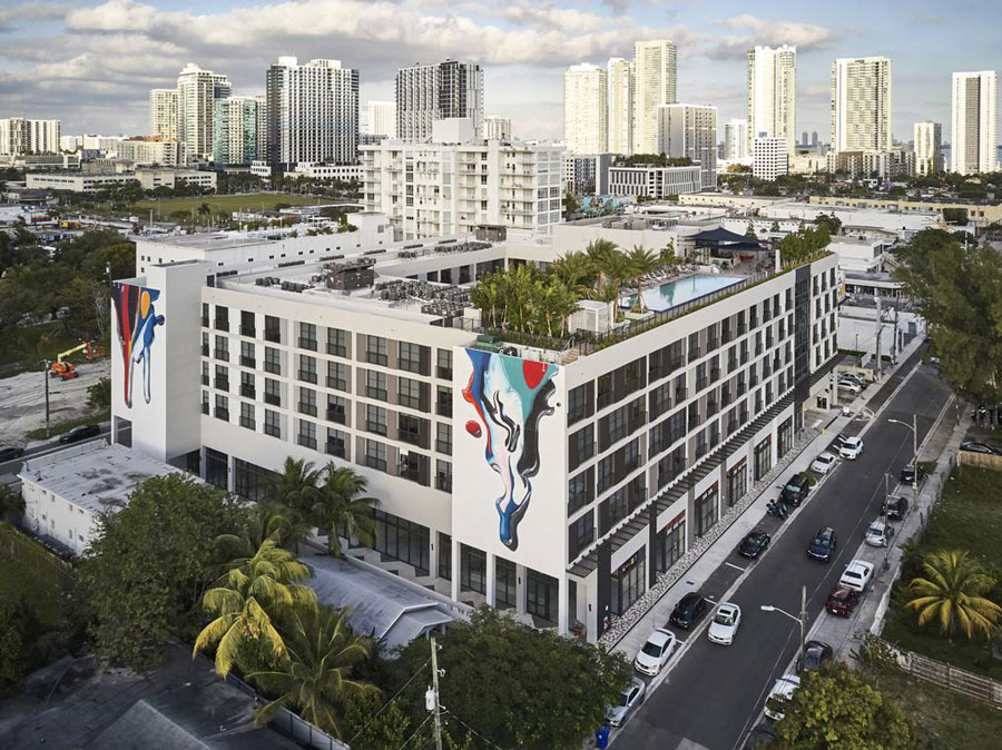 Wynwood 26 is a mixed-use apartment building that features 174 apartments and over 35,000 square feet of commercial space on the ground floor. The building is now known as Domio Wynwood, and is used as a hotel and short-term rental building in Miami’s up and coming Wynwood district.